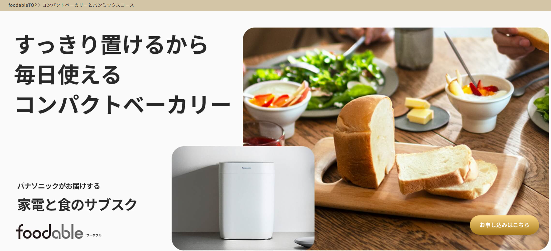 おうちで焼きたてパンの香りを楽しみたい。でも場所がない、時間もない……。そんな方にぴったりなのが、「コンパクトベーカリーとパンミックスコース【foodable】」。キッチンの小さなスペースにも置ける手のひらサイズのホームベーカリーと、簡単・おいしい専用パンミックスがセットになった新発想のパンづくりコースです。