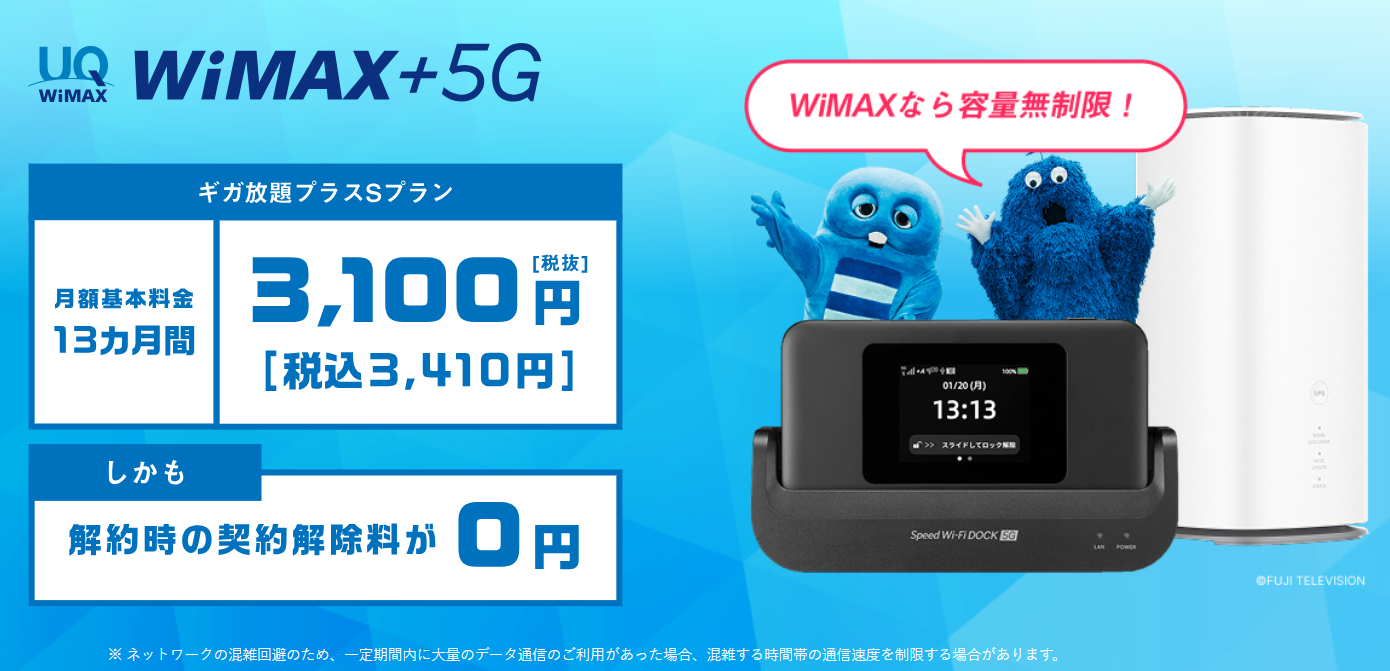 DTI WiMAX 2+は、工事不要で利用できるWi-Fiルーターです。